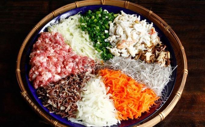 Nhân rau củ nên để khô ráo mới trộn thịt gói. Ảnh: Bùi Thủy